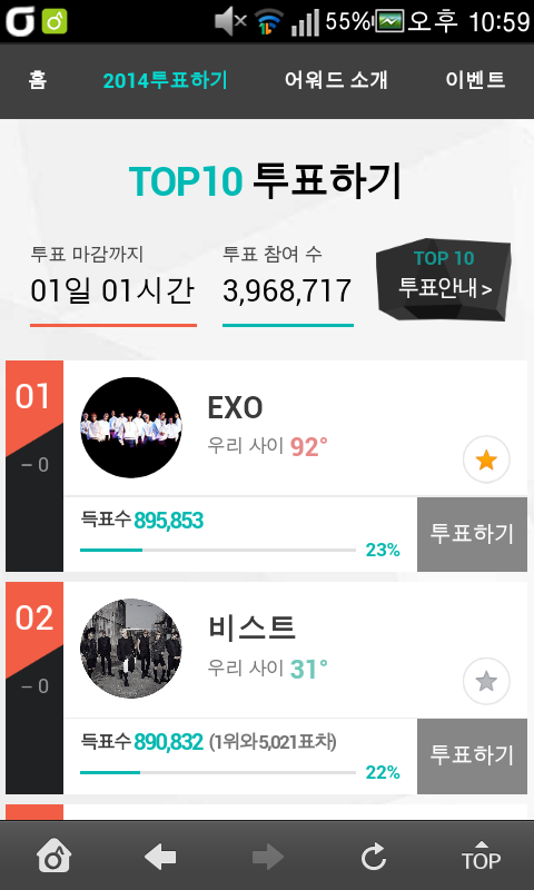 오구오구 우리 엑셀 개이뻐 투표차 5천넘음!
