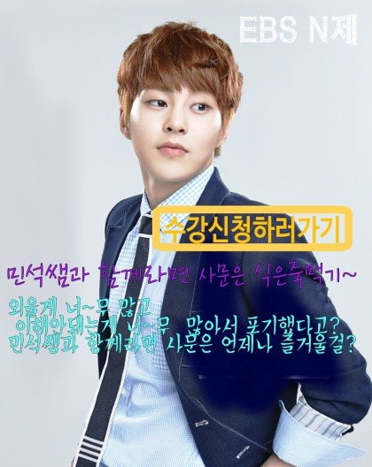 하.. 난 전형적인 문과생으로 수학 싫어했는데 민석이가 수학 잘 한단 소리듣고 좀 놀랐어... 저런 선생님이라면 수학 열공했을텐데...ㅠ