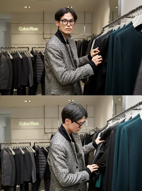 시크한 표정에 캘빈 클라인 플래티늄 아이템들로 쫙 빼입고