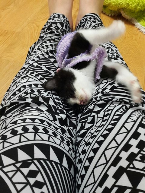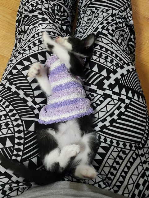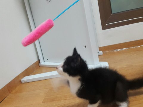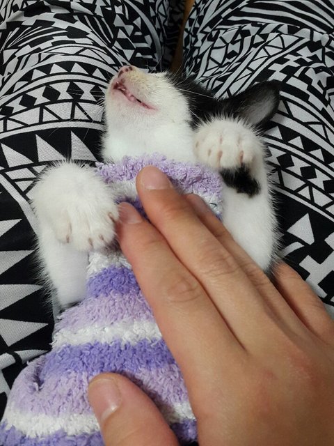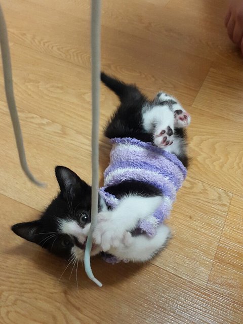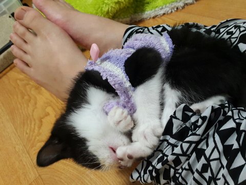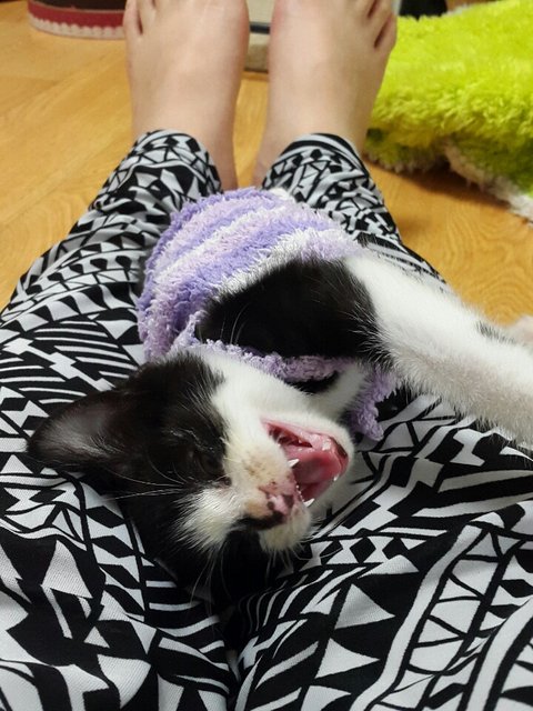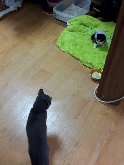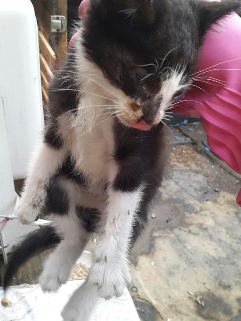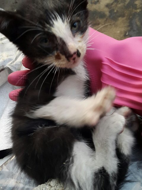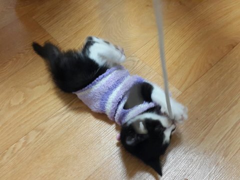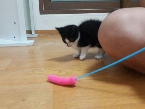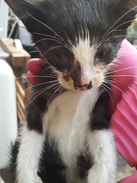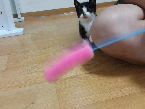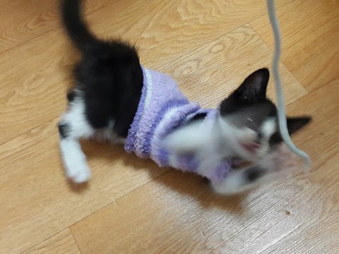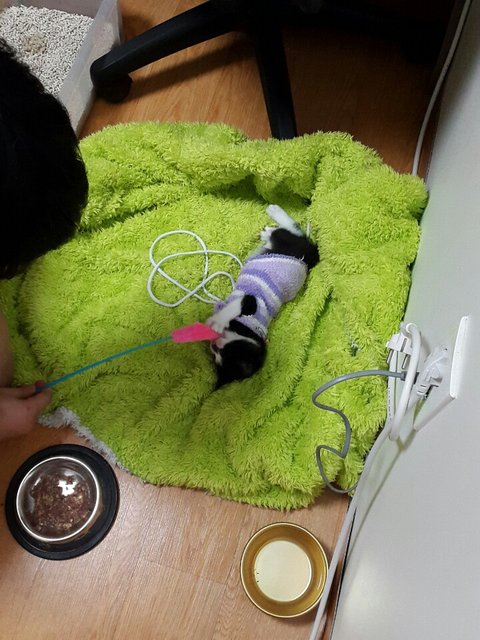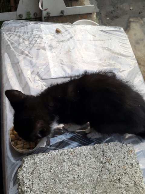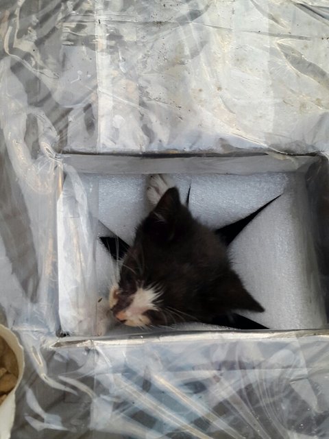 평소 직장에서 길냥이들 밥주며 지내는데 방금전 새끼고양이한마리가 음식쓰레기를 먹고있는걸 발견하고 보니 오래혼자방황한거같고해서 우선 데려다 얘들주는 사료좀 불려서 먹였는데..