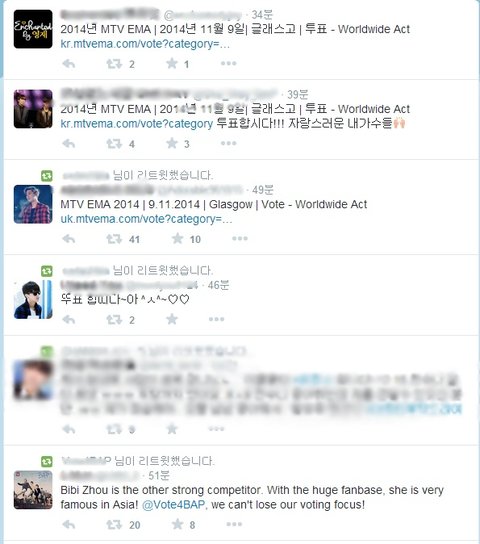 우리애들이 같이 후보에 올라 경쟁을 한다는 것이 B.A.P가 벌써 이만큼 커졌구나 ㅠㅠ하고 조금 벅찰만큼큰 스타들이 많아 그러니까 자나꺠나 투표조심! 할수 있다 베이....팬여러분들하!!