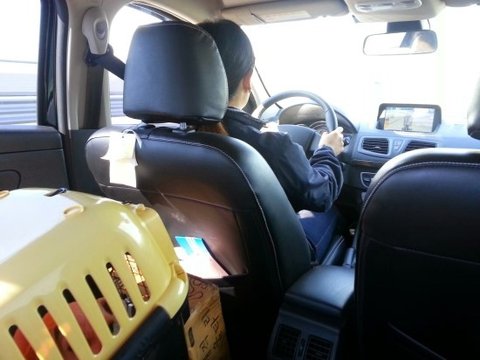 입양날짜에 맞춰 미용을 마친 유진이는.. 차량봉사자님의 차에 탑승하였습니다..