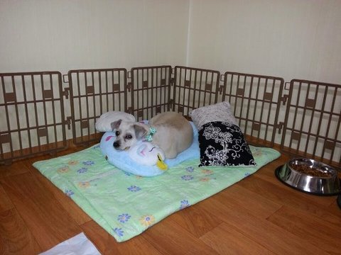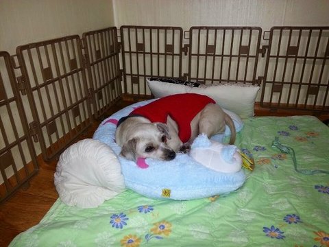 응가 산책 후에는, 방석에 편하게 몸을 길게 뻗고 잠든다니... 초롱이 이제 새로운 견생이 시작되었습니다~