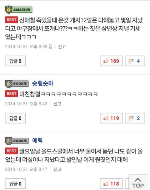 야구장 간걸로 욕먹는게 아니라 라디오에서 그리고 트위터로 오바만 안떨었어도 저렇게까지 욕은 안먹었지 그리고 발인식에도 안보이던데?그렇게 쌩쑈를 다하더니 어처구니가 없을뿐이다
