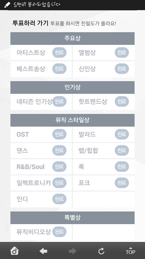 엑소 후보 없는 분야도 다 투표 완료 해야만