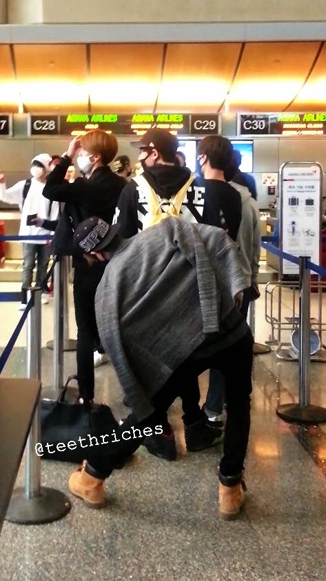 백현인 공항에서 스트레칭중