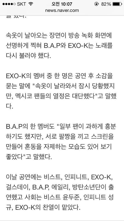 EXO-K B.A.P 뮤뱅 공연 중 속옷 투척한 현지인