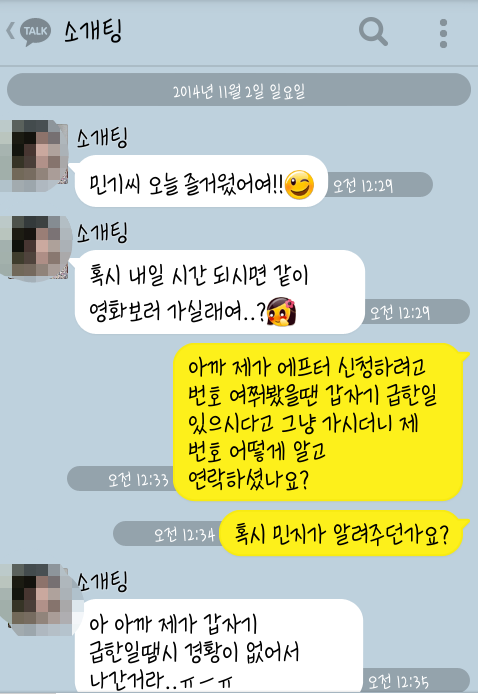 평소에 연락도 자주 안하던 이성친구가 어느날 저에게 뜬금없이 소개팅을 제안하더군요
