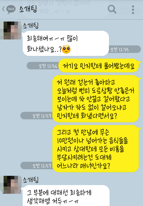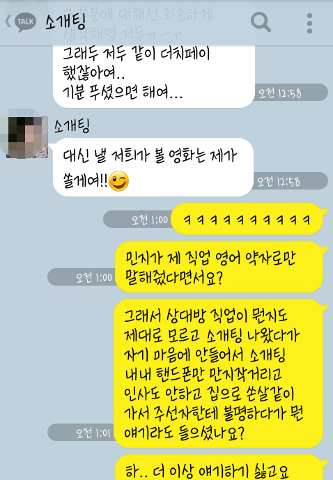 어떻게 된 일인지 주선자한테 물어보니깐 이 여성분이 주선자인 제 친구한테 불평하다가 제 친구한테 뭔가 한소리를 들은거 같더군요