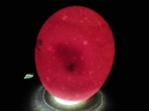 하루하루가 지날수록 유정란 안에서 생명이 자라고 있는지 궁금해집니다. 그래서 '검란'을 합니다. 검란은 주위를 어둡게 만든 다음, 유정란에 전등을 비춰 내부를 관찰하는 행위입니다. 인터넷에서 어느 분께서 올린 글을 보고 저도 휴대폰 플래시와 시디를 이용해서 검란을 했습니다.