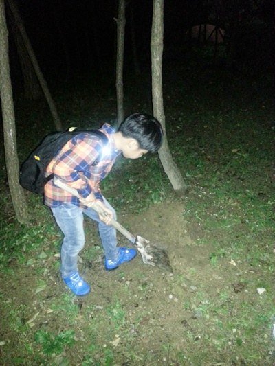 ▲ 샐리를 묻어주는 형민이 아파트 옆 화단에 샐리를 묻어주었습니다.
