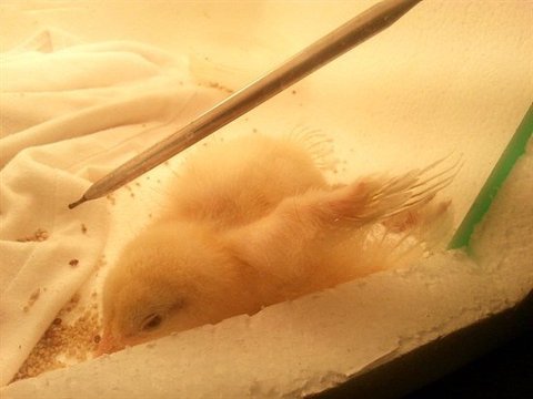 지난 11일 토요일, 아침에 모이를 주려고 베란다에 나갔다가 샐리가 차가운 타일바닥에 널브러져 있는 것을 발견했습니다. 다행히 죽지는 않았습니다. 날개를 살짝 움직이는 것을 봤거든요. 높이가 낮은 종이 상자에 넣어두었는데, 그걸 넘어와서 밤새 추위에 떨었던 것입니다. 샐리를 다시 살리려고 아들과 함께 여러 궁리를 했습니다. 우선 따뜻하게 해줘야 해서 다시 부화기를 조립하여 그 안에 넣어주었습니다. 마치 인큐베이터 같았습니다.