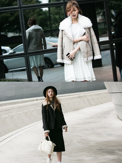 고소현의 베이지 무스탕과 화이트 드레스로 러블리한 패션과