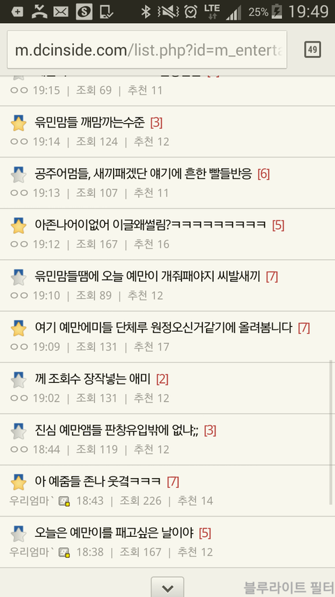 거지같은 별명 붙혀서 필터링하는데 혐오스러움