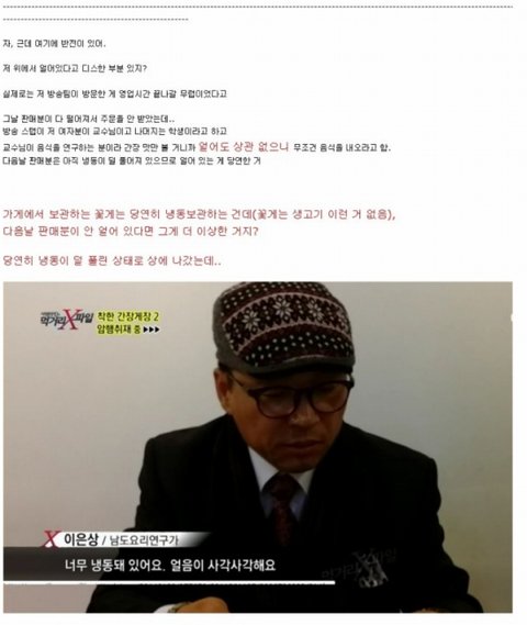 저번에도 훈제 계란 조작됐다고 말 많더니 쯧쯧...방송 믿을게 별로 없다 너무 믿지 마 그리고 맛집 방송 대부분은 광고비 최소 몇십에서 몇백은 받아서 그럴듯하게 방송하는거 모르나? 고발 프로그램도 마찬가지지 게다가 종편인데 더하면 더했지ㅋㅋ