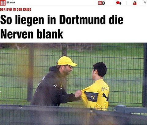 클롭감독에게 멱살잡힌 카가와