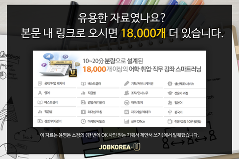 아래 링크로 가면 이런 정보가 18,000개 더 있다고 해요~!출처 ▶잡코리아 페이스북