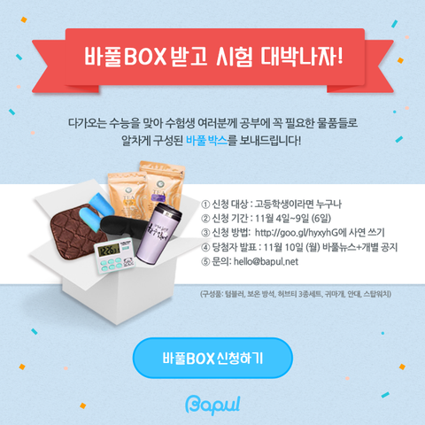 바풀이 수험생 바풀러를 응원하는 마음을 담아 바풀 BOX를 드립니다!