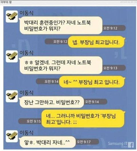 옆에 부장님이라도 오시면 굽신굽신~ 뉘예뉘예~~ 지가 노예지염~ 노예지염ㅋㅋ