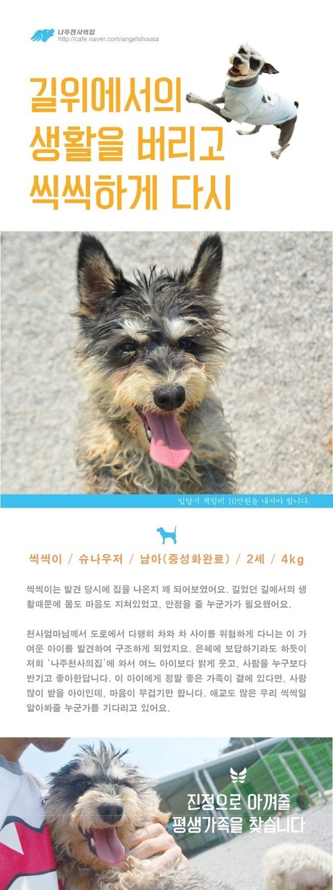 [나주천사의집/슈나우저] 길위에서 발견된 천사, 씩씩이가 좀 더 씩씩해 질 수 있도록...