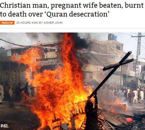어느 날 공장 휴지통에서 불탄 코란이 발견됐는데요 사람들은 부부를 의심했습니다 기독교를 믿는다는 이유 하나 때문입니다 이슬람 지도자들이 선동적 발언을 하면서 사람들을 모았다고 합니다 한데 모인 사람들은 흥분했고 부부에게 몰려가 일을 저지른 겁니다