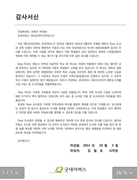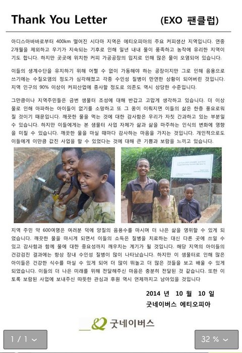 데야지역의 도서관 건축 이외에도 시마다지역에서 우물사업을 진행하였습니다. 부족한 예산에도 꼼꼼히 일처리를 도맡아서 해주신 굿네이버스에 다시 한 번 감사드리구요. 이 모든 일을 가능하게 해주신 민석이 팬여러분들께 감사드립니다. 고맙습니다.