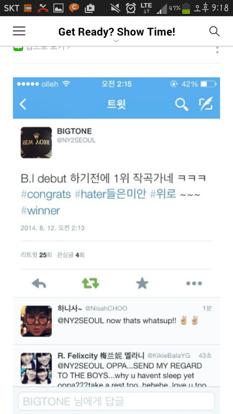 위너 타이틀곡 공허해를 비아이가 작곡했다고 하네욤..첨 알았음...ㅋㅋ윈때부터 비아이 작곡능력 장난아니었지ㅠㅠ양싸가 지디급이라 할정도로.. 근데 겉으론 선물로 줬다지만 양싸가 거의 뺏다싶이 해서 줬다는데....ㅠ원래 yg는 빅뱅 에픽하이 처럼 팀멤버 자작곡으로 타이틀도 하고 앨범도 내지않음? 위너 다른 노래도 좋긴햇지만 타이틀 급은 없긴없더라...ㅋㅋ딴팀 노래 뺏어주면서 양싸도위너 작곡능력을 다시 생각해봤을듯 강승윤이 청중울리는 노래 쓰고 싶다했는데 솔직히 감동은 climax-b팀이 더 있었던거 같고 그때도 자작곡은 실력차이가 있었는듯