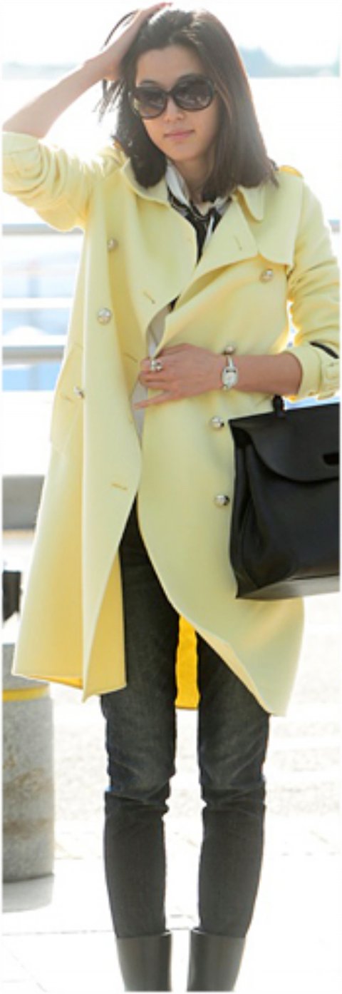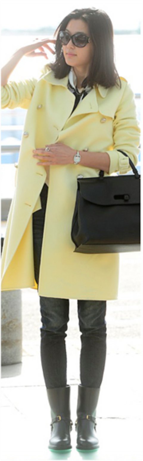 긴단발머리로자르고 공항에 온 전지현..