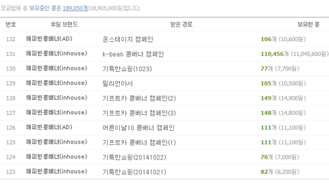 다른 콩배너들 보면 꾸준히 받는 애들 100명정도 같은데 저것만 11만명이 받았네ㅋㅋ 버그 발견해서 광클한건가? 어쨌든 하루만에 천만원 달성ㅇㅇ 팔백만원>천구백만원으로 확 뜀