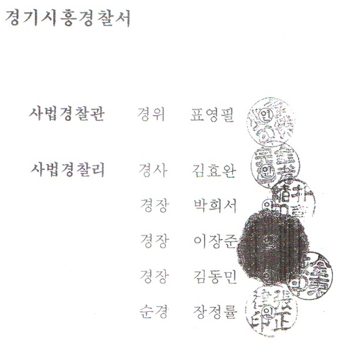 이러한 현장검증을 맡았던 사람들의 명단과 저희엄마 사건을 맡았던 경찰서입니다.