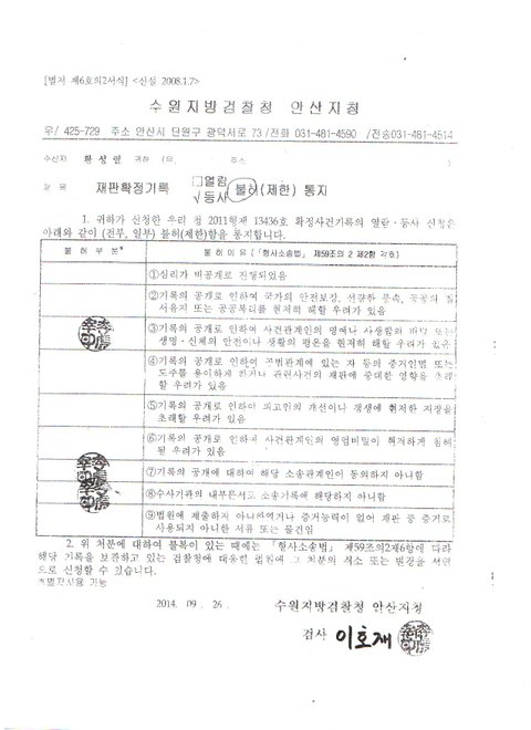 윗글 송부처리와 9월 2일 수원지법 강남수 검사님을 배당 받아 수사를 하던 중 저희 할아버지께서 현장검증 사진을 띄려하자 검사는 아래와 같은 이유들로 불허시켜버렸습니다.