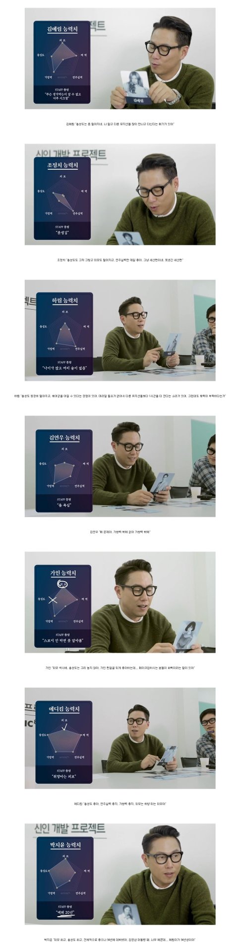 윤종신의 소속 연예인 능력치 평가