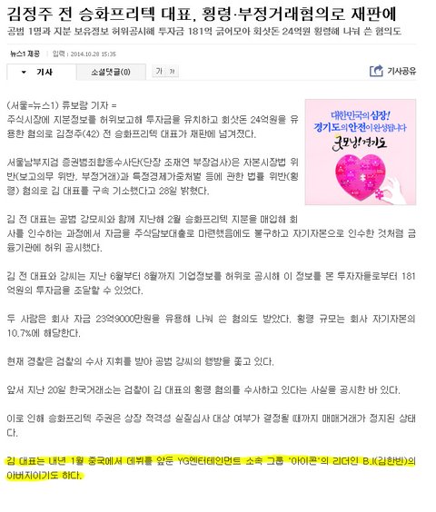 YG 아이콘 리더 B.I 아빠 법원 갔다 함.