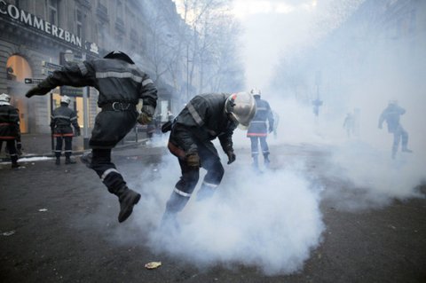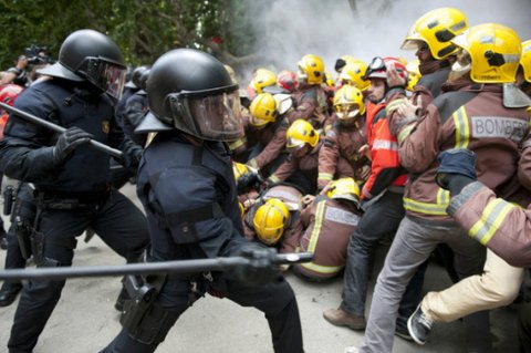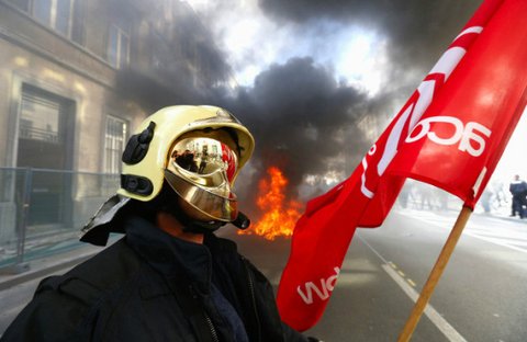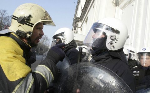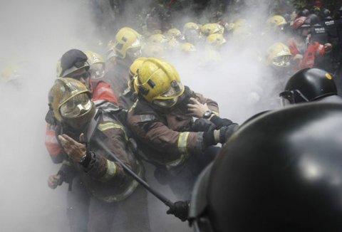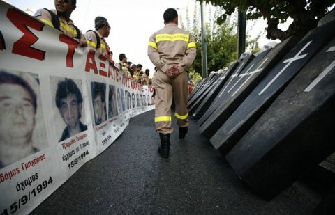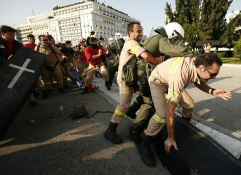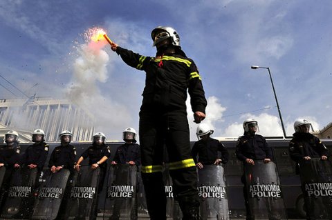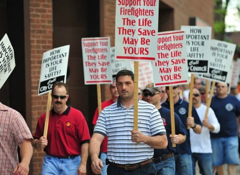 정부의 무차별적인 소방관 해고에 대항하여 전 소방대원이 뉴욕시내 행진 시위