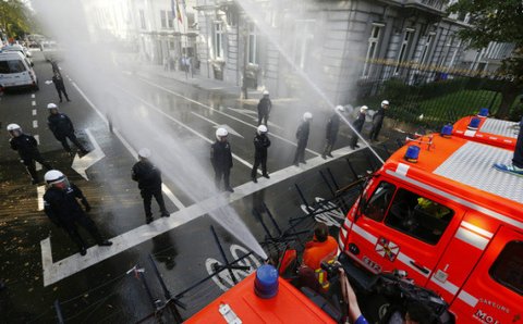 경찰이 진압에 나섰지만 실패 후 진로 봉쇄