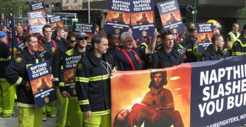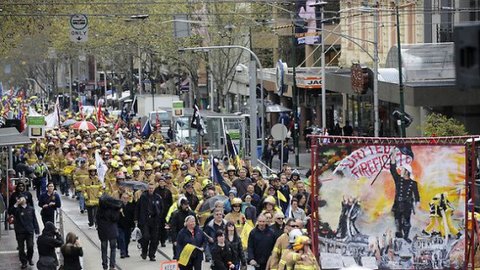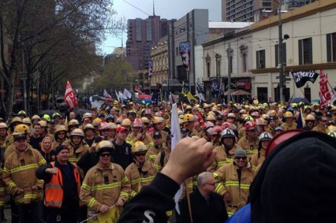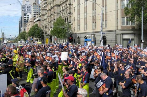 정부의 소방예산 삭감에 대항하여 멜버른까지 시위 행진