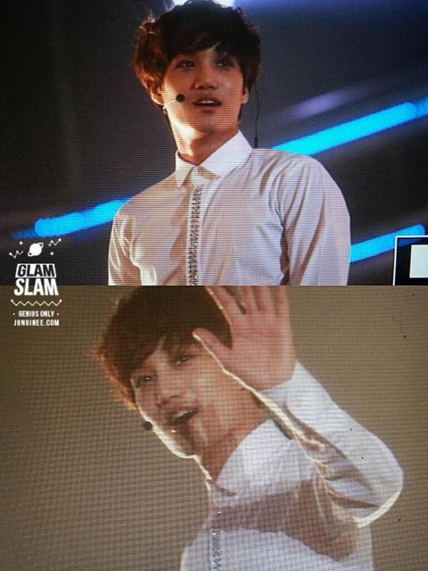 141109 Lotte Family Concert : 컨디션이 안 좋다며 양해를 구했음에도 불구하고 열심히 무대한 종인이. 퇴장할 땐 몇 번이고 뒤를 돌아보며 팬들이랑 이별했어요ㅠ.ㅠ 다정햇