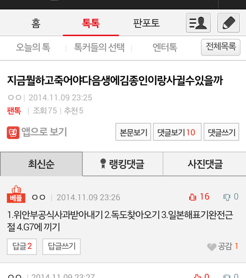 오늘의 팬톡