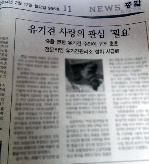 실제로 유기견을 구조해서 신문에 나올 정도로 정말 너무너무 동물을 사랑하시는 분입니다.