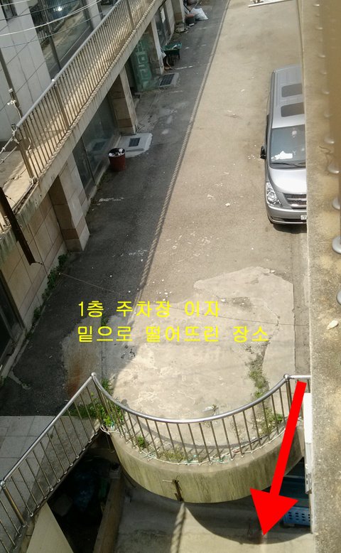 옥상으로 끌고 올라가 밑으로 떨어뜨리려 하자 가해자 외 다른 애들이 소리지르고 시끄럽게 떠들자 (306호 할머니께서 들은소리) 다시 마당주차장으로 가 1층에서 지하로 (3~4m) 밀어버렸다고 생각한다.
