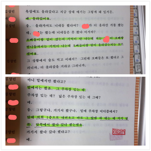 위에서 떨어지는데 슬리퍼가 가지런히 있을수 없고, 슬리퍼에 피도 많이 묻어 있던것을 보았다고 합니다.제3의 폭행장소가 있다는 것을 증명합니다. (노래방 주인이 7시경 119에 신고 하였다고 거짓말을 했다고 합니다.)