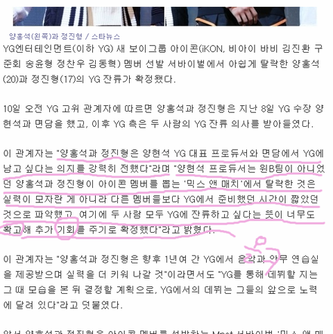 하여튼 나는 홍시랑 지녕이 YG에서 남는거찬성임