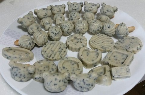 이건 화이트 초코에 초코크런치를 넣어서 쿠앤크 같은 느낌으로 만들어 본 거에요