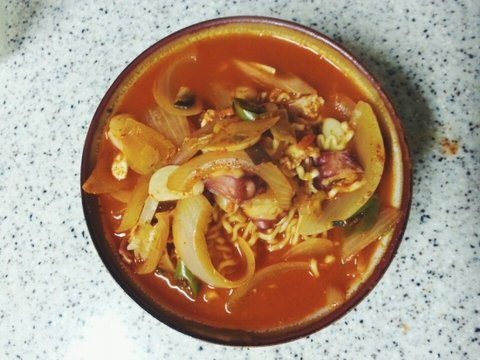 양파한개넣고끓여서 양파먹고 배불러서 면은 남김..
