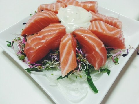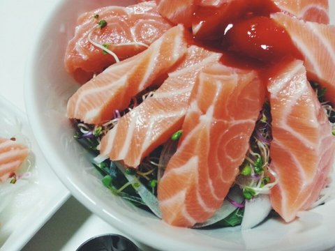 코스트코에서 연어 한뭉텅이사와서 연어회덮밥이랑 그냥 연어회(?)