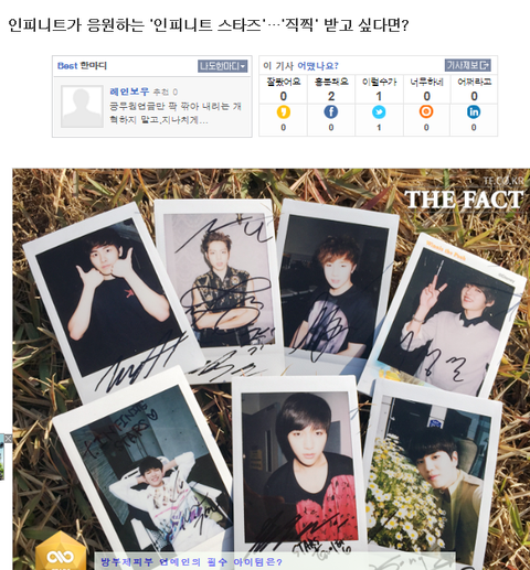 인피니트 직찍 받고싶다ㅏ........사인까지 있네요