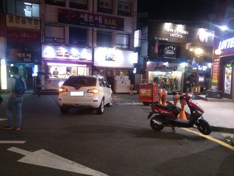 차가 한대 오더니 우회전을 할것처럼 분명히 저각도에선 우회전 해서 가는게 맞음