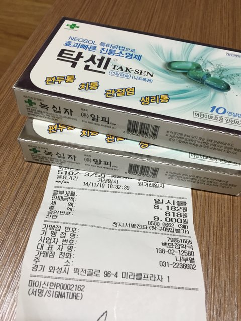 오늘 저녁 치과 치료후 진통제를 구입하러