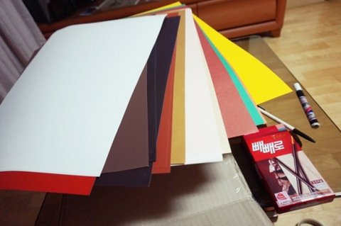 봉봉로를 만들기위해 각종색지와 빼빼로를 구입해 왔구요