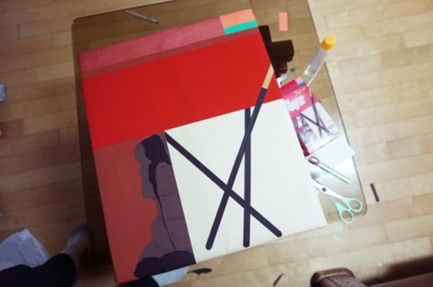 밑그림 따라 하나둘 ~~ 색지를 붙여 나가며 베이스 작업을 끝냈구요+0+